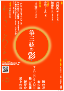 出演 若岡史子〈箏・三絃〉 加藤みえ〈箏・三絃〉 特別参加 宗利てるみ〈箏〉